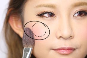 ブラシを丸くくるくると動かしながら頬の一番高いところに入れていきましょう。
