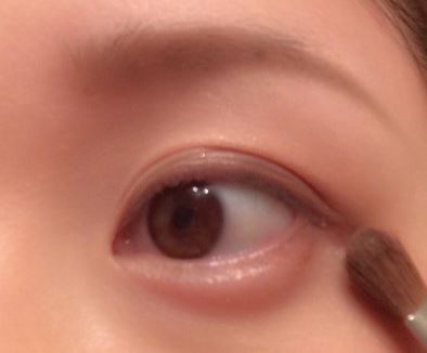 次に、二重幅の線より少し下に、赤みがかったブラウンのアイシャドウをのせていきましょう。
