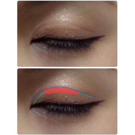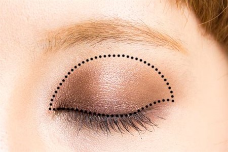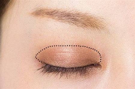 次に、先ほど全体に被せたアイホールの2/3くらいの幅に濃いブラウンのアイシャドウを被せましょう。