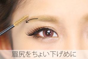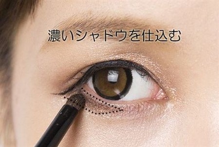 ツリ目の方は、下瞼のキワに三角状のアイシャドウを乗せて下さい。