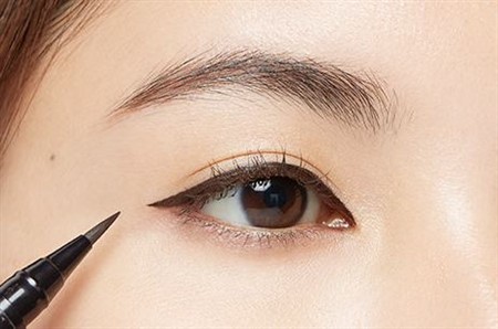 アイラインは、黒のジェルライナーを使って太めに目を沿って引いていきましょう。