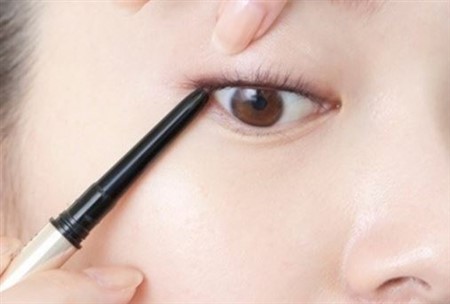 Eブラックのペンシルライナーで囲みアイラインを施す