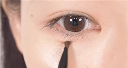 Fアイブロウペンシルを使って幅狭めの自然な涙袋を作る