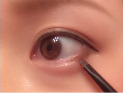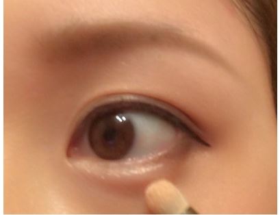 下まぶたには、暗めのブラウンのアイシャドウを目尻の1/3のせていきます。