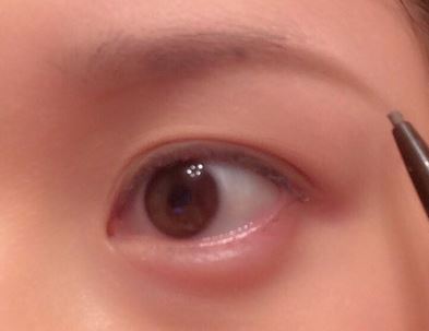 まずは、ブラウンのアイブロウペンシルで眉尻だけ丸くクッキリ描いていきます。
