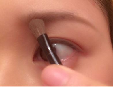 次に、二重幅の線より少し下に、赤みがかったブラウンのアイシャドウをのせていきましょう。