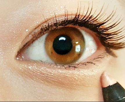まずはブラウンのリキッドアイライナーで、アイラインを細く引きます。