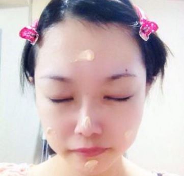 両頬の上、鼻筋、顎の4点に軽く乗せてください。