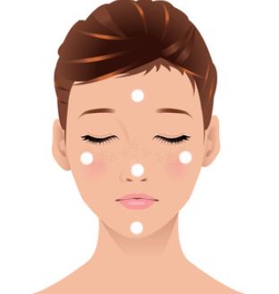 乳液は、おでこ、両頬、鼻、顎の5点に適量おいてから、手の腹で優しく肌に馴染ませるように塗っていきましょう。