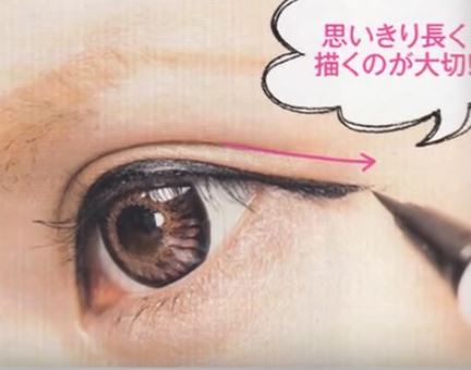 目尻は思いっきり長めに引いてタレ目にするのがポイント。