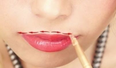 アヒル口を作るポイントは、口角をキュッとあげるように口紅を塗っていくこと。