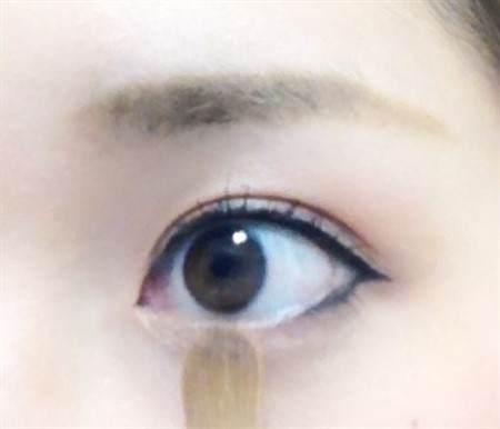 下まぶたには、上まぶたにも使った明るめのブラウンのシャドウを筆で軽く入れます。