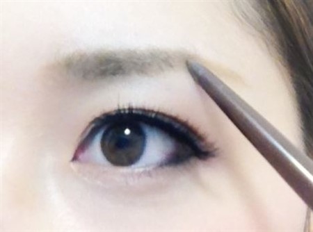 Bアイブロウペンシルで上向きの角度のある眉毛を描く