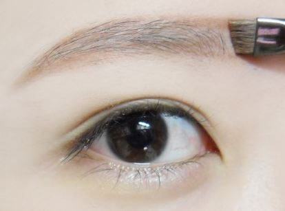 小松菜奈さんのボサボサ眉毛を演出するために、最後は眉パウダーを塗って描いた輪郭をぼかしていってください。