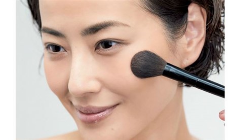 頬骨の高くなっているところを中心に、ブラシで軽く塗っていきます。