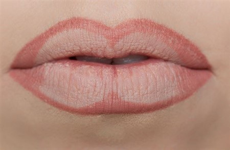 まずはブラシで唇の輪郭を描いていき、最後に色を乗せていきます。
