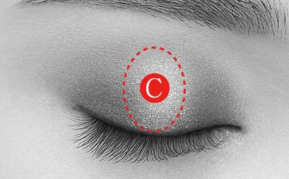 次に、アイホールの目尻側の半分にもう少し暗いブラウンのアイシャドウを重ねましょう。