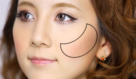 入れるポイントは、頬骨の下に三日月を描くようなイメージです。