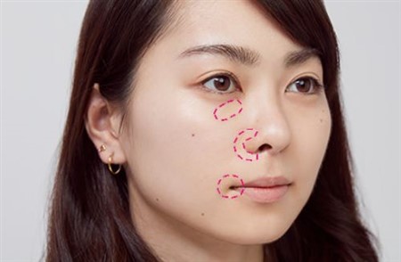 特に肌がくすみやすい部分は、目の下、鼻の際、口元です。