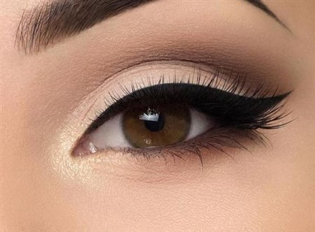 Eアイライナーでガッツリラインを引いて跳ね上げのネコ目を演出する