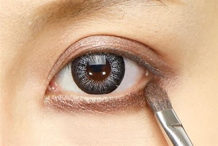 Dブラウンのアイシャドウでグラデーションを施す